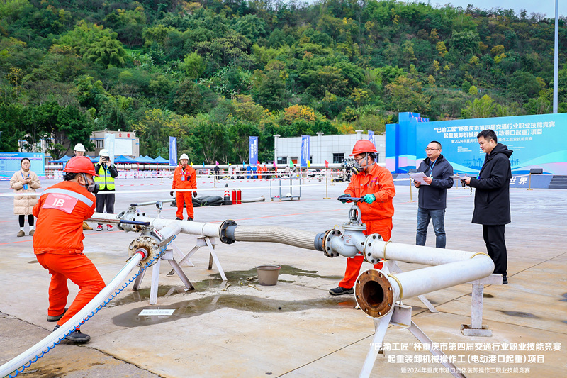 本次大赛由重庆市交委、人社局主办,重庆市港航海事事务中心、职业技术鉴定指导中心、FUN88乐天使在线登录、区交委承办,长寿港航海事事务中心、化码公司协办。大赛设置电动港口起重竞赛和流体装卸竞赛两个项目,采取理论知识竞赛和实际操作竞赛相结合的方式,内容涵盖港口作业操作、应急救援、应急处置、法律法规等,全面检验参赛选手的知识储备、综合能力和现场操作技能。电动港口起重竞赛与重庆市职业技能等级鉴定挂钩,参赛选手决赛实操技能成绩合格者,可按规定获得与命题等级对应的职业技能等级证书。