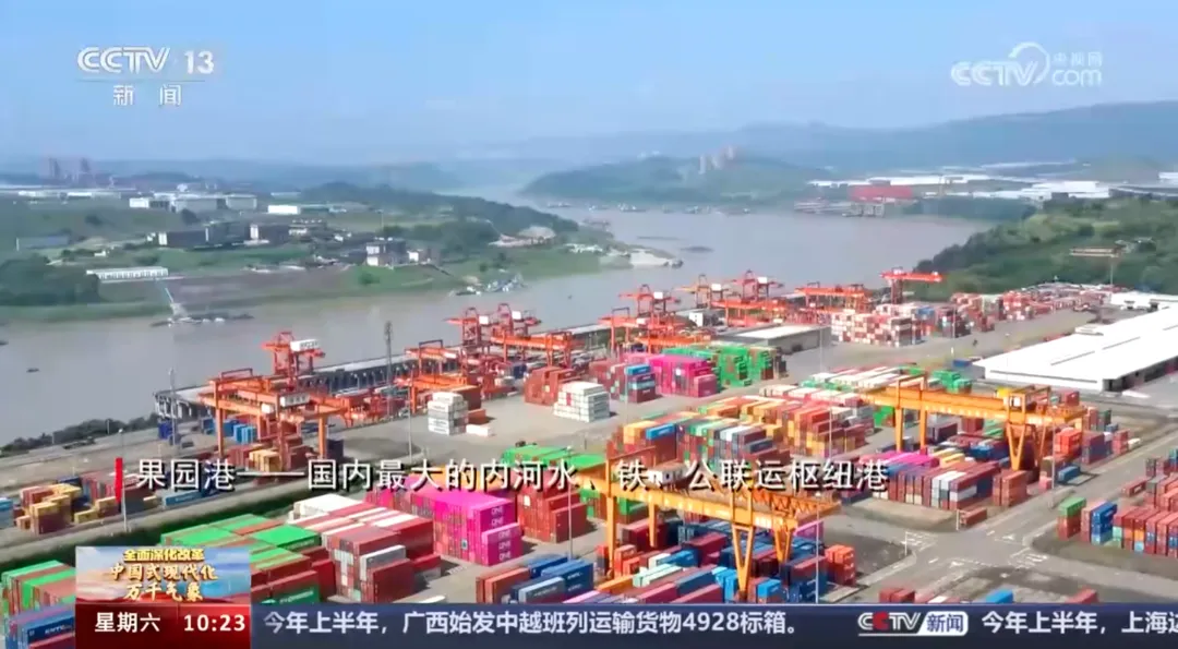 央视新闻联播、央视新闻直播间 《全面深化改革 中国式现代化万千气象 重庆 江海联运承东启西 打造内陆开放高地》报道果园港