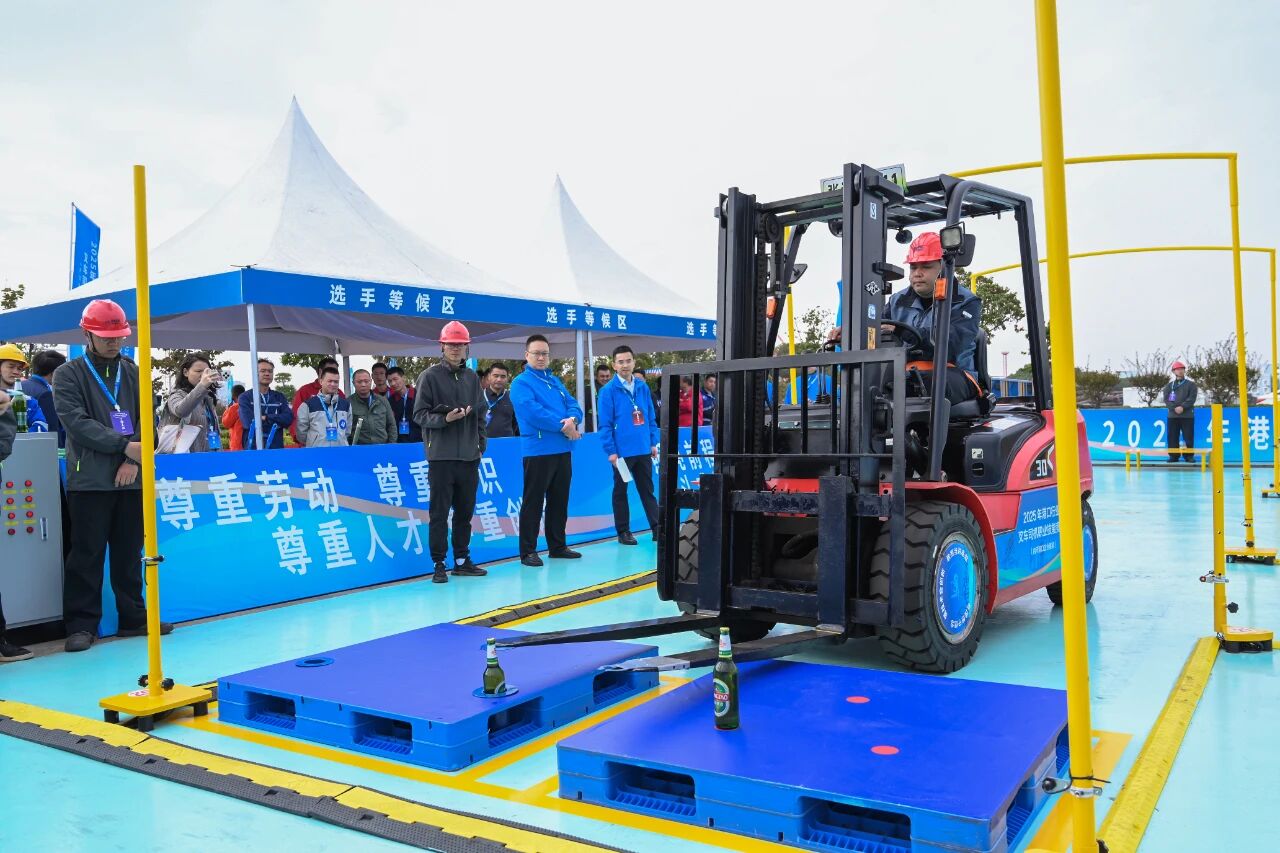 本次大赛由中国港口协会与中国海员建设工会全国委员会联合举办,内河港口企业赛道共吸引来自25家单位的49名选手参加。大赛采用“红外电子评分系统+人工辅助评分”的考评方式,设置“理论考试+技能操作”两个环节:理论考试涉及机械基础、叉车例检例保、叉车工作原理、发动机和液力传动、安全操作事项等相关内容;技能操作设置实干笃行、强基固本、专业精进、勇攀高峰四大关卡,考验选手在快速通过障碍、精准堆放货盘、灵巧拾币投壶、平稳搭建杯塔方面的综合能力。