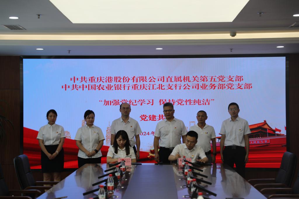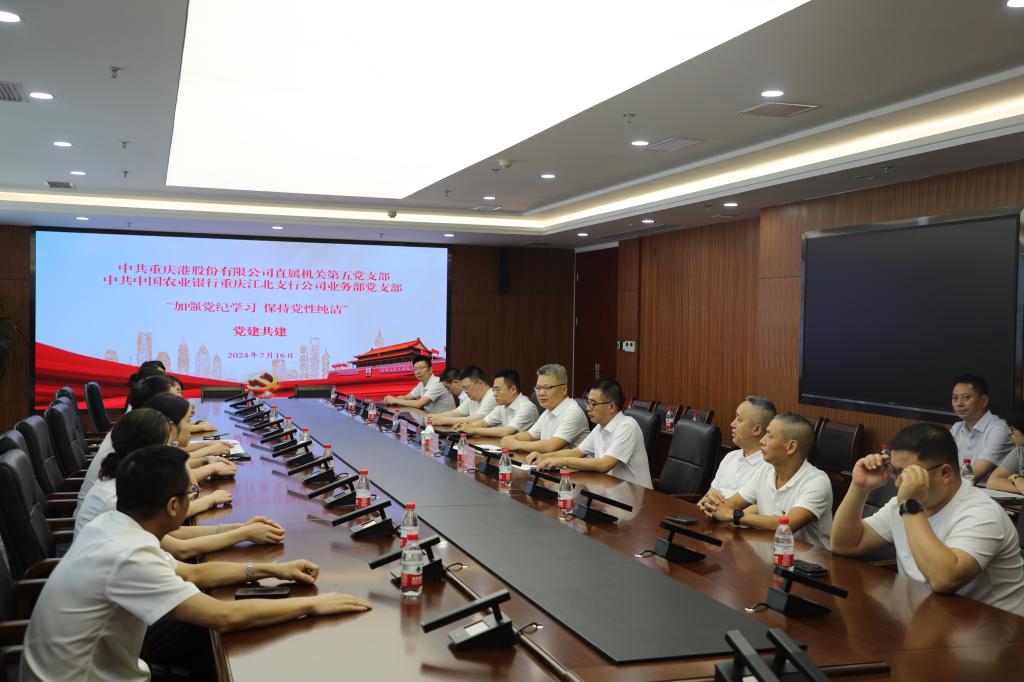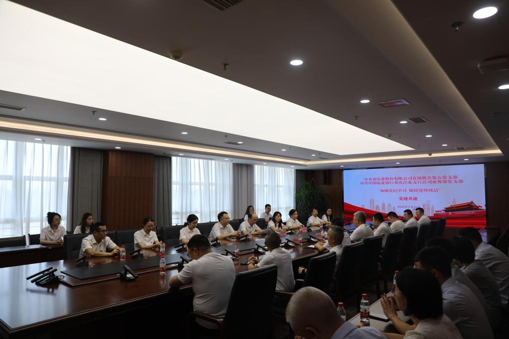 为进一步深学笃用习近平新时代中国特色社会主义思想,切实将中央党纪学习教育工作往深里走、往实里走、往心里走,推动全面从严治党向纵深发展,构建“资源共享、优势互补、共同提高”的党建新格局。7月16日下午,中共FUN88乐天使在线登录直属机关第五党支部与中共中国农业银行重庆江北支行公司业务部党支部共同开展党建共建主题党日活动。